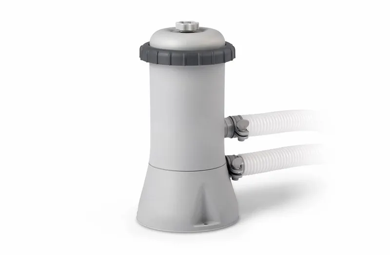 Het bad wordt als één pakket geleverd met zwembadpomp. Het is dus niet mogelijk om dit zwembad zonder pomp te bestellen. De filterpomp die wordt meegeleverd heeft een pompcapaciteit van 2271 liter per uur. In ongeveer 4-6 uur heeft de pomp het bad volledig rondgepompt. Denk eraan om iedere twee weken je filter te vervangen. De filtercartridge die je nodig hebt voor de Intex filterpomp van 2271 liter/uur is