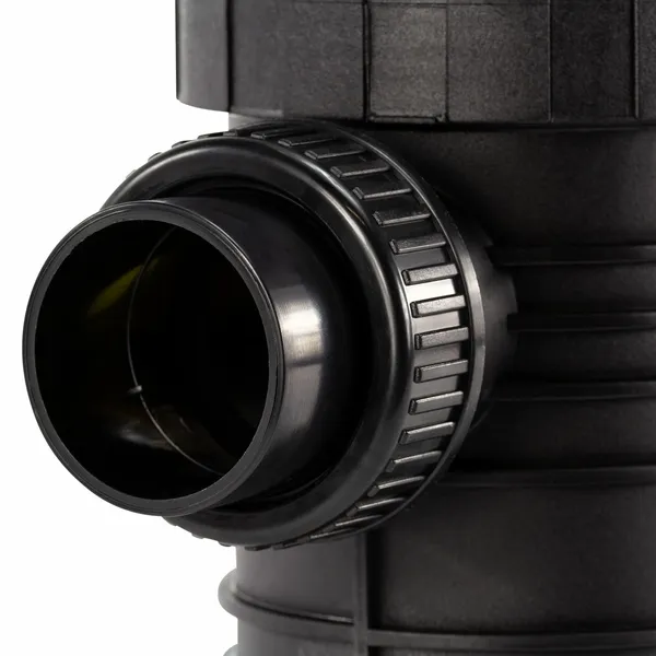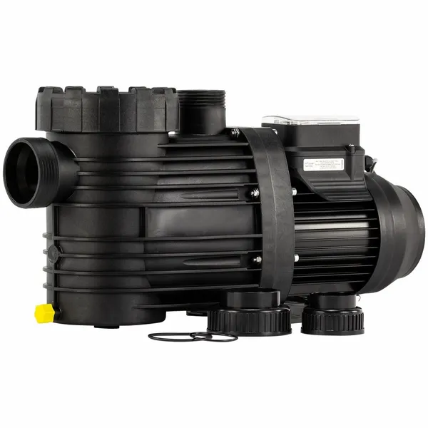 De standaard leidingwerkaansluiting van deze pomp is 63mm aan de aanzuigkant en 50mm aan de perskant. Neem eventueel extra verloopstukken om de aansluiting passend te maken met je leidingwerk. Verder wordt er standaard een stekker meegeleverd, dus daar hoef je je geen zorgen over te maken.